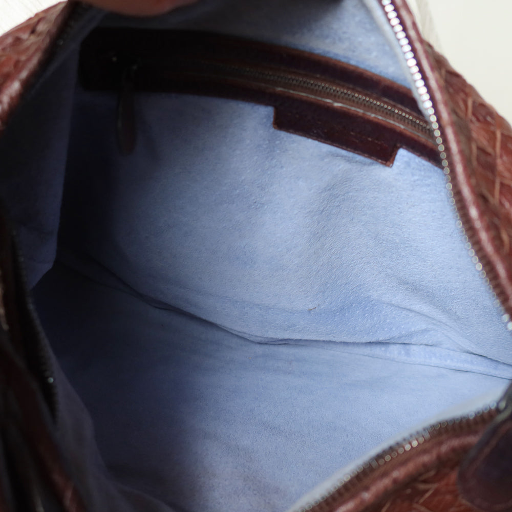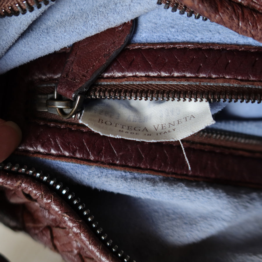 Bottega Veneta Vintage Dark Brown Double Intrecciato Weave Ebano Hobo Shoulder Bag