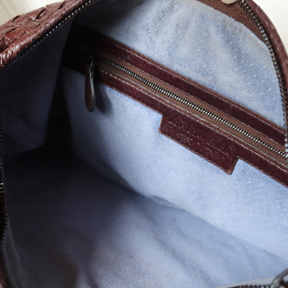 • Condition: good condition with no peeling or stickiness. Some discoloration near the opening of the bag, as normal signs of wear (from dark brown leather on the exterior!). Some stains inside zipped pocket. All can be cleaned and won't impact use.