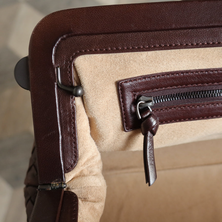 Bottega Veneta Vintage Dark Brown Intrecciato Kiss Lock East West Shoulder Bag