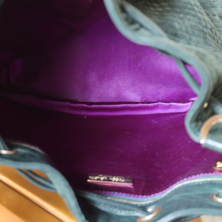 Classic intrecciato concept but done in a stitching pattern on suede leather, pairing with the lovely braided shoulder strap (my favorite) and gold hardware, the design details are nothing short of amazing. (Oh and thee interior lining is in a satin purple, how unique!)