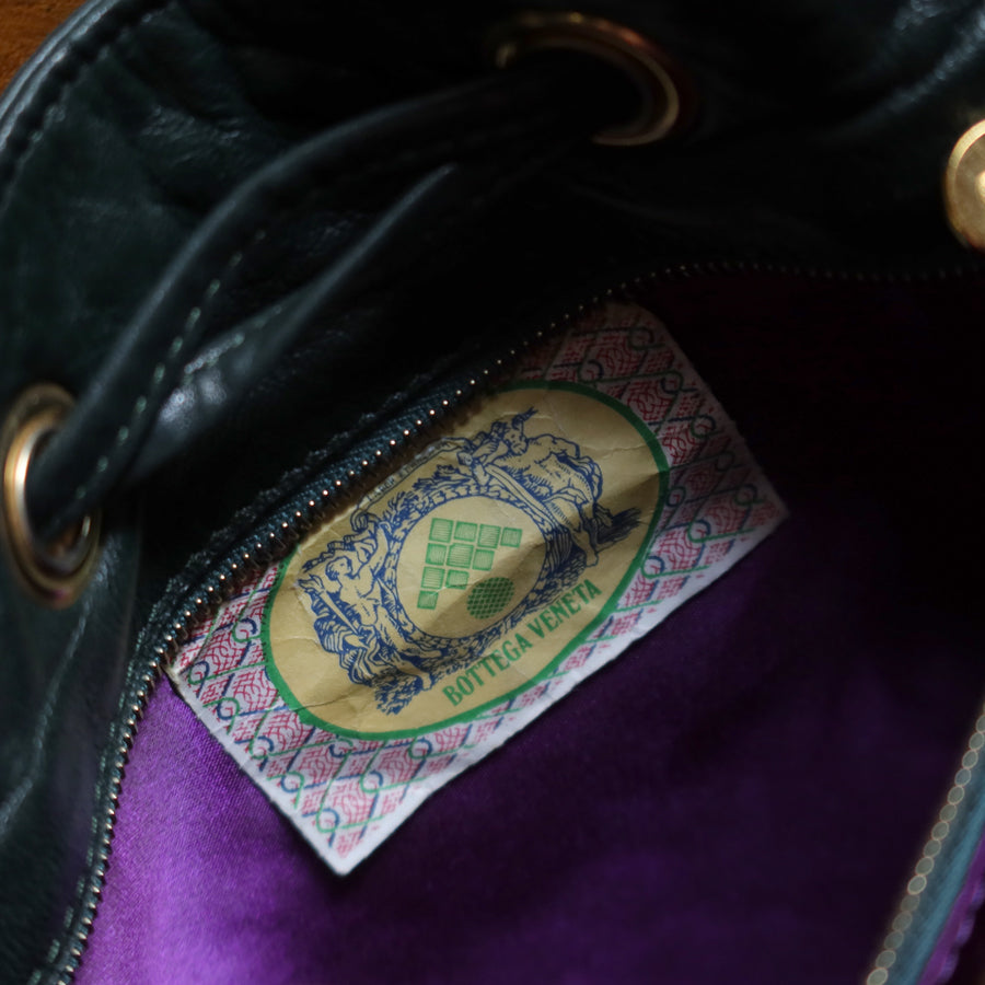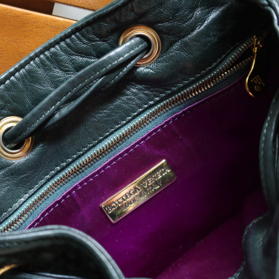 Bottega Veneta Vintage Dark Green Intrecciato Weave Braided Strap Bucket Bag
