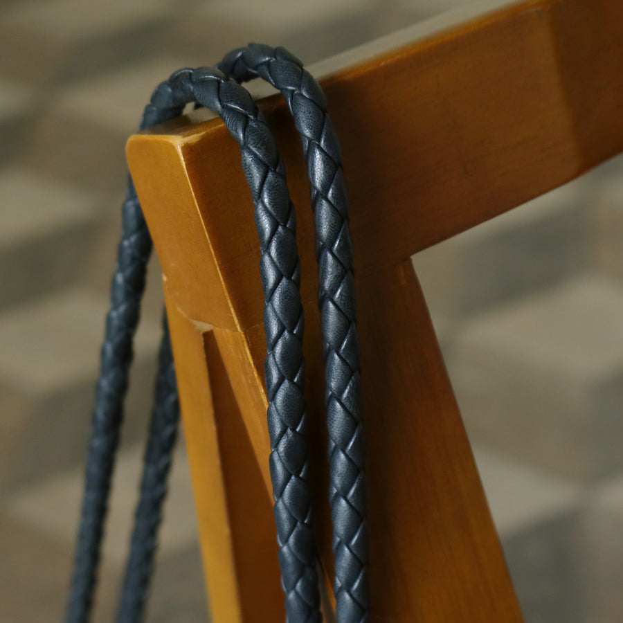 With a gorgeous braided shoulder strap, cute braided zipper charm, shinny gold hardware, it's an all-rounded Bottega bag but in a unique shade—a light navy blue that's unlike others. This bag gives such a classic & sleek look with its shape and fine design details.