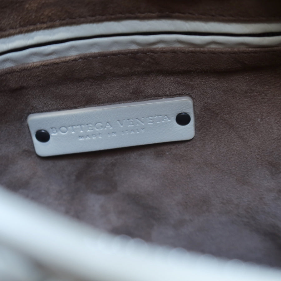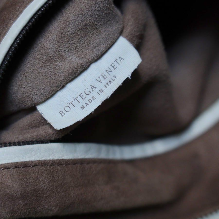 Bottega Veneta Vintage White Navy stitching Intrecciato Veneta Hobo Shoulder Bag