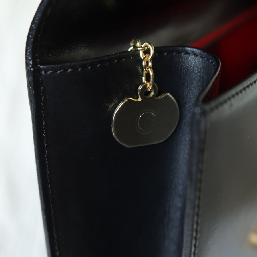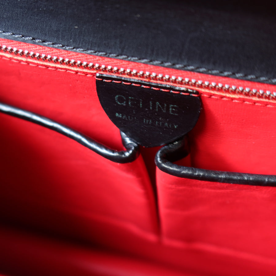 Celine Vintage Black Embossed Leather Gold Clasp 2way Shoulder Flap Bag