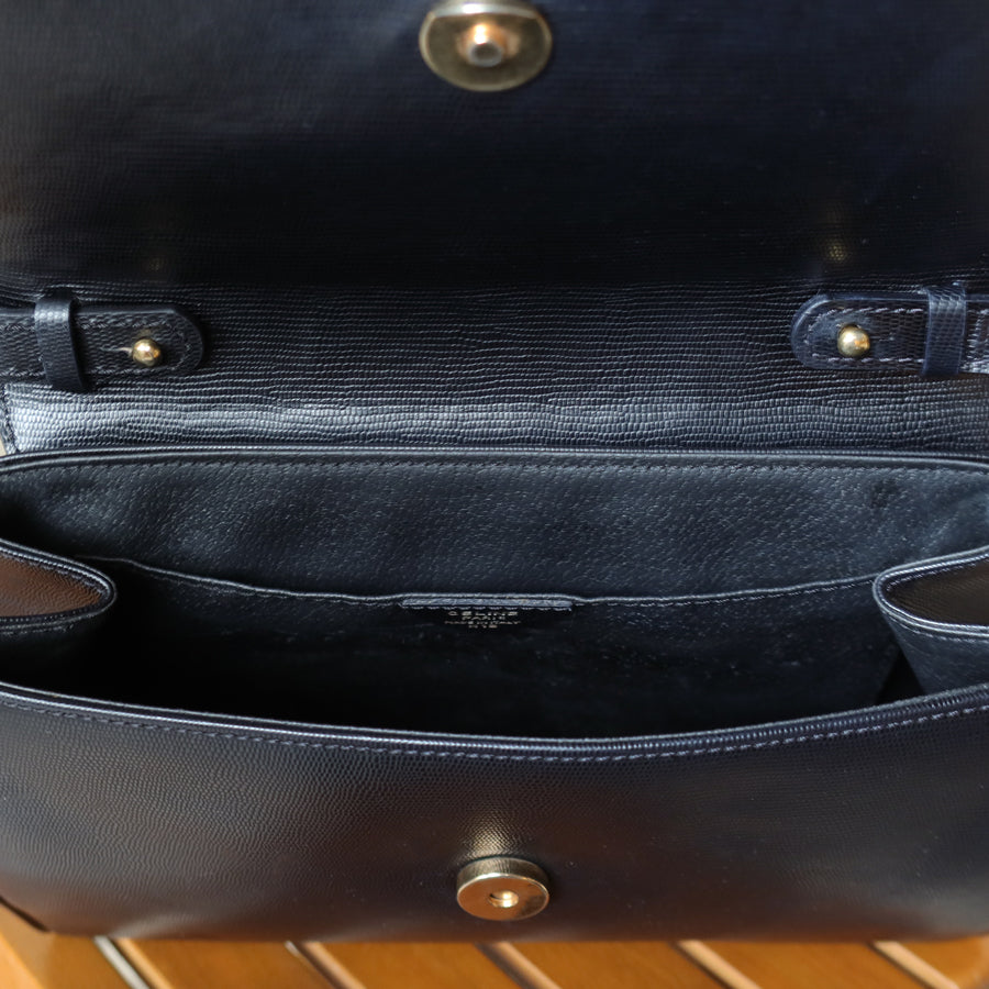Celine Vintage Black Leather Celine Ring Logo Crossbody Shoulder Bag
