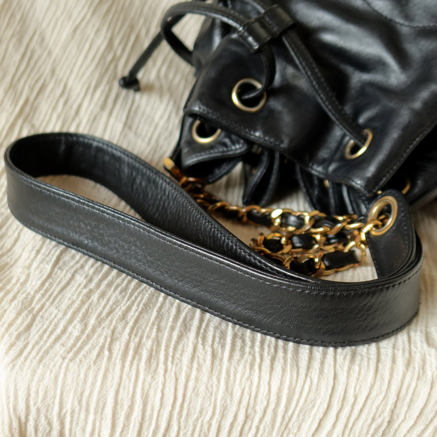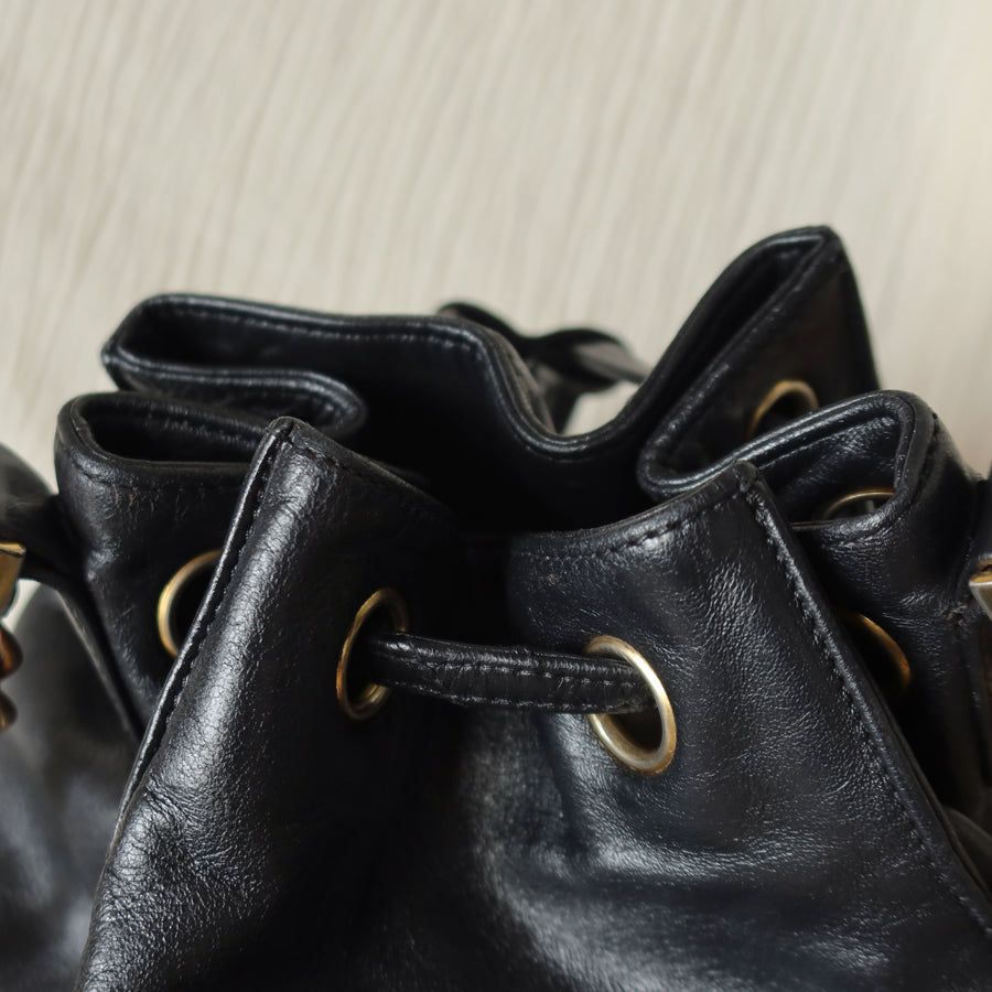 Chanel Vintage Black Lambskin Coco mark Crossbody Bucket Shoulder Bag