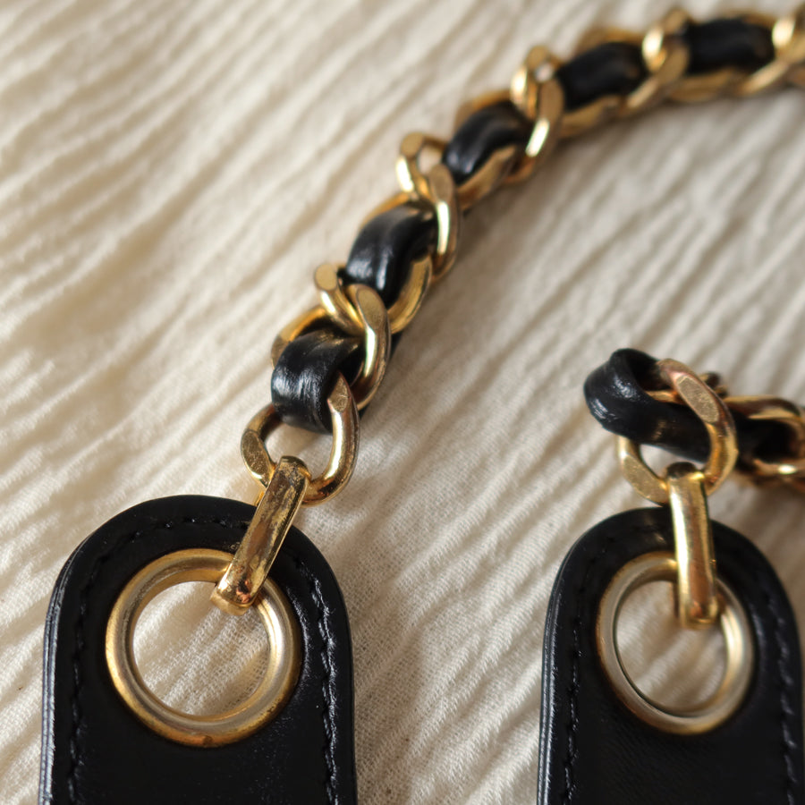 A rather large Coco mark is stitched on the front, while it is large, but it's black on black, which means it's not too "in your face" and much more classy! The 24k gold plated chain is a lovely classic Chanel detail, with the strap extended with leather so it sits easy over the shoulder.