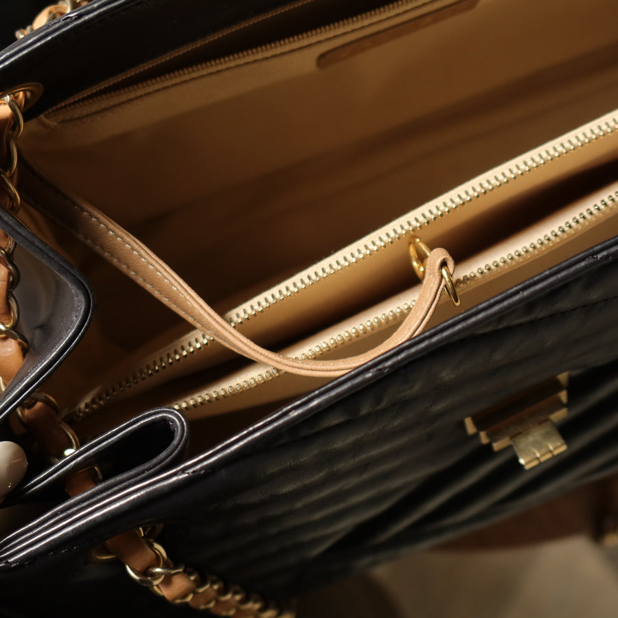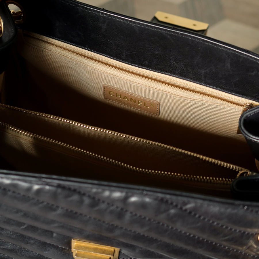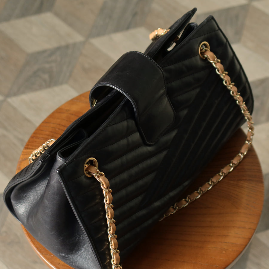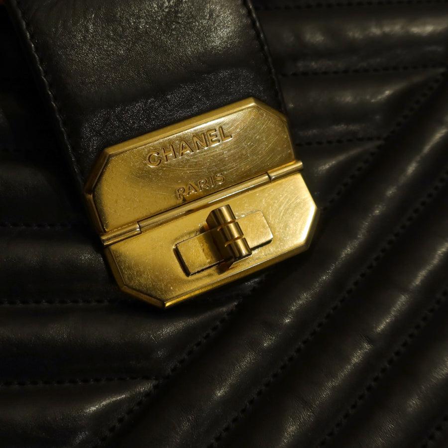 Chanel Vintage Black Lambskin 2.55 Chevron Gabrielle 2way Shoulder Bag