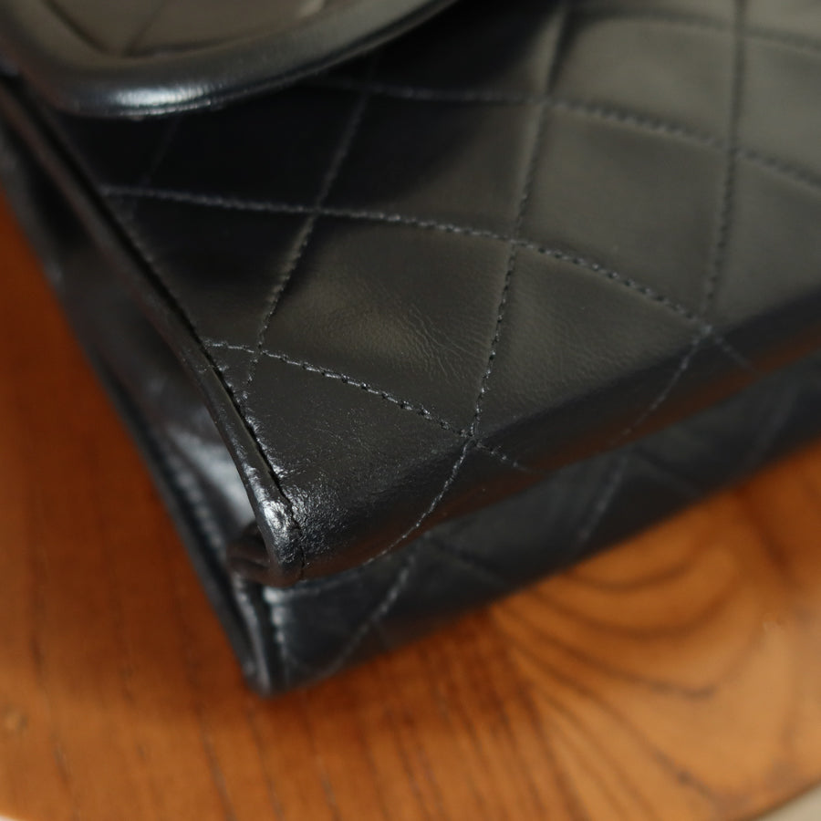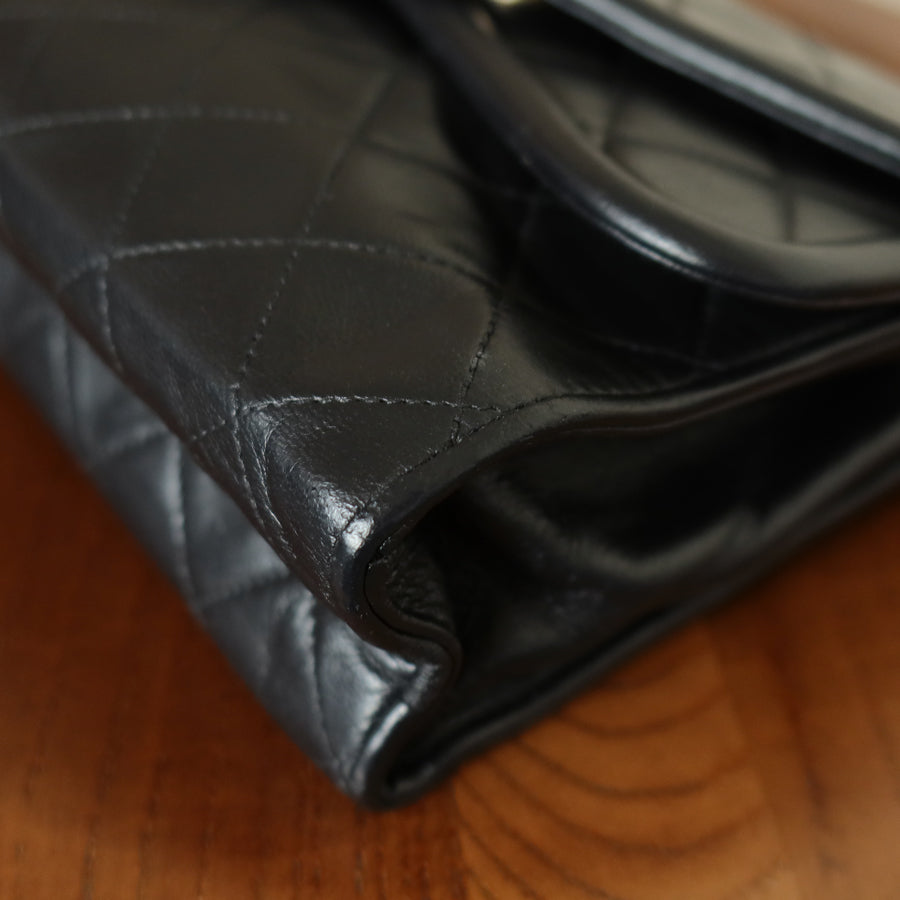 Chanel Vintage Black Lambskin Gold Tassel Asymmetrical Double Flap Bag S