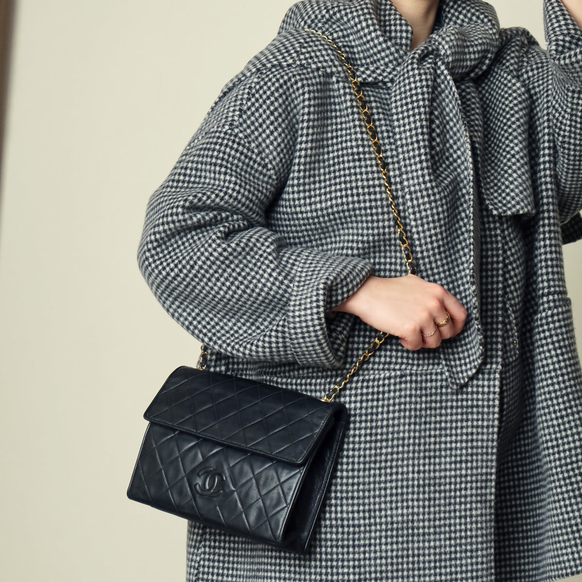 A stunning timeless style that differs from other Chanel design, this bag has a shorter flap opening, resembling close to the classic flap with more subtle tone-on-tone design details and perfect diamond quilted stitching.