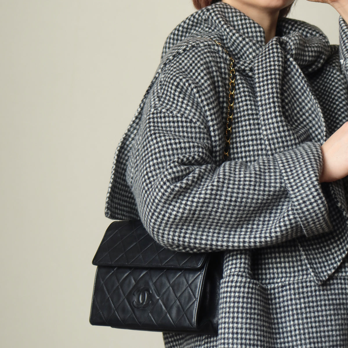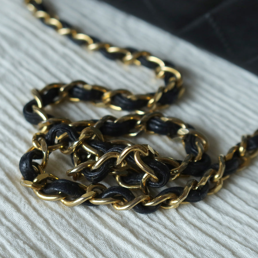 This flap bag has a great size, bigger than some other vintage chanel chain bag I've sourced, and only a little smaller than the medium classic flap bag. It's also very light weight.