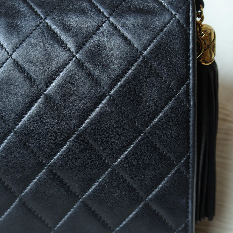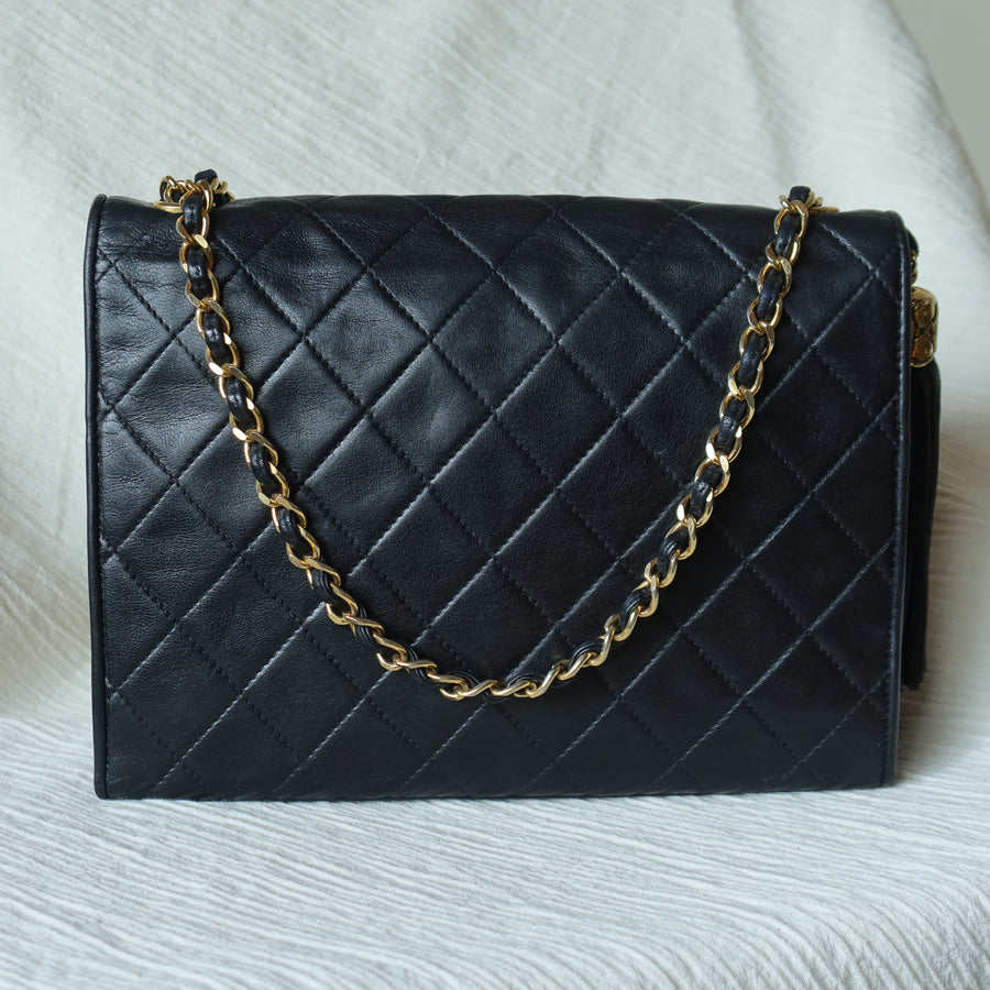 Chanel Vintage Black Lambskin Tassel Quilted CC mark 3way Classic Flap Bag