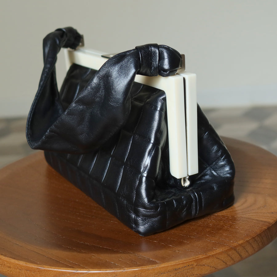 The chocolate bar quilted design is iconic from Chanel's 2000s design, and the lambskin leather is still so super supple with a beautiful sheen to it. Framed with an off-white resin-like closure design, a beautiful interlocking CC logo is the opening clasp at the center. This piece is subtle yet so iconic with all the Chanel elements! I alsolove that the strap is beautifully soft while the bag body has more structured to it. A lovely contrast.