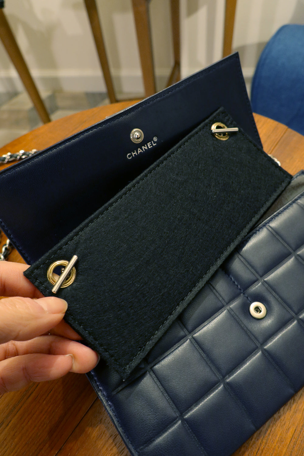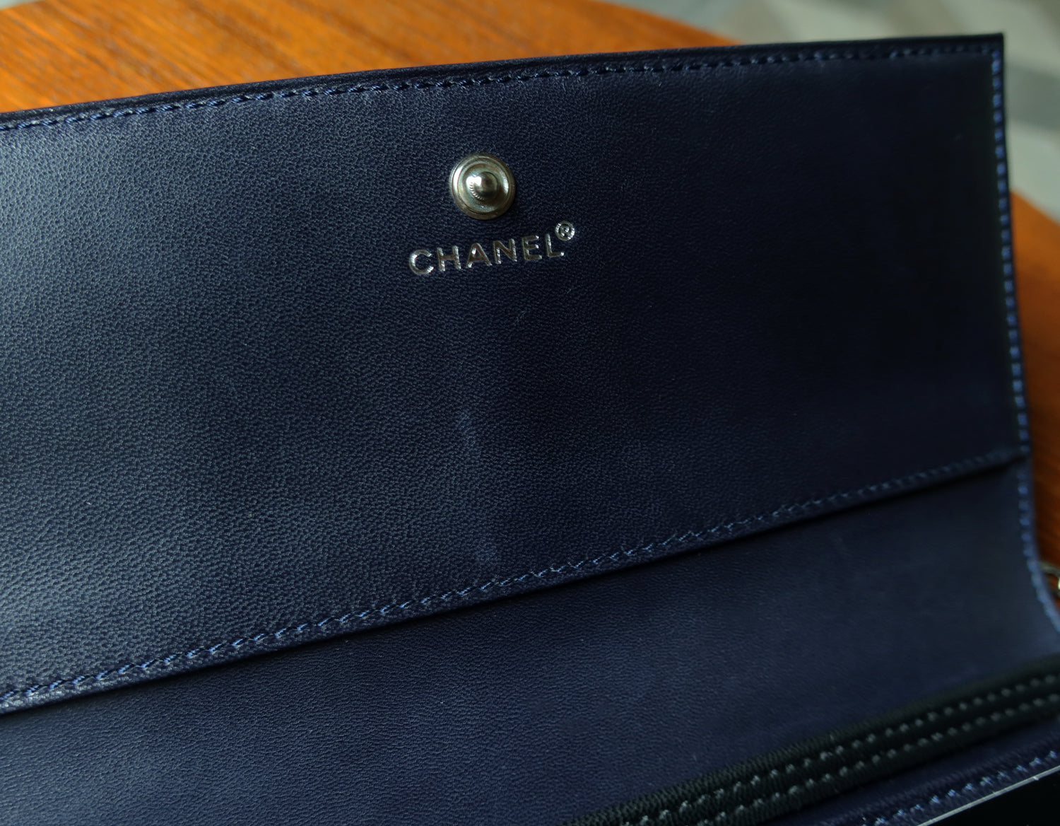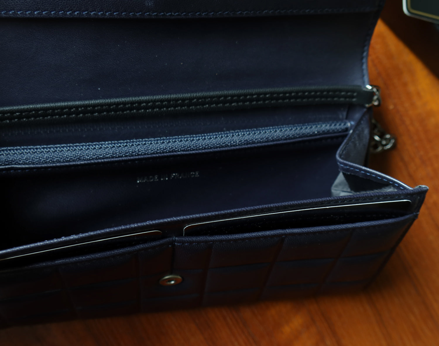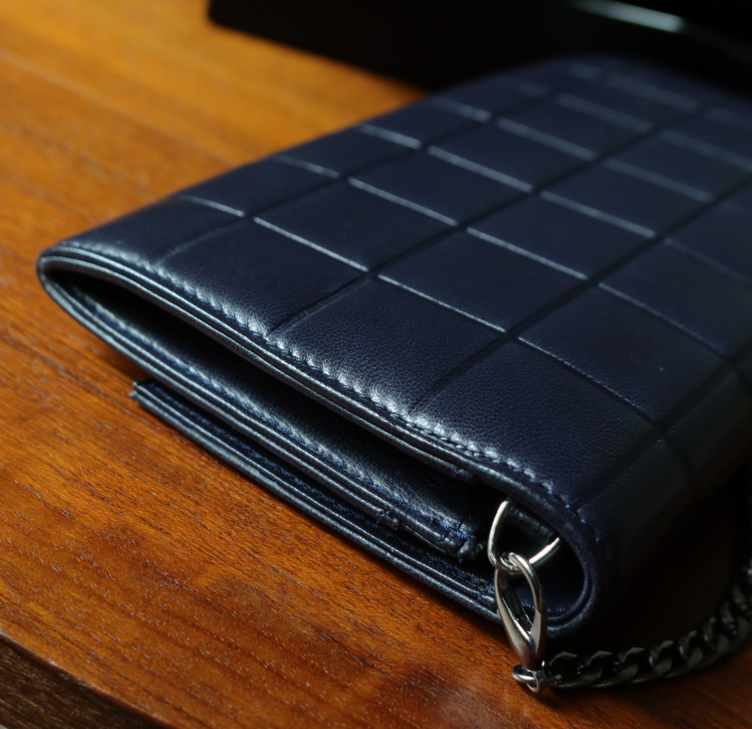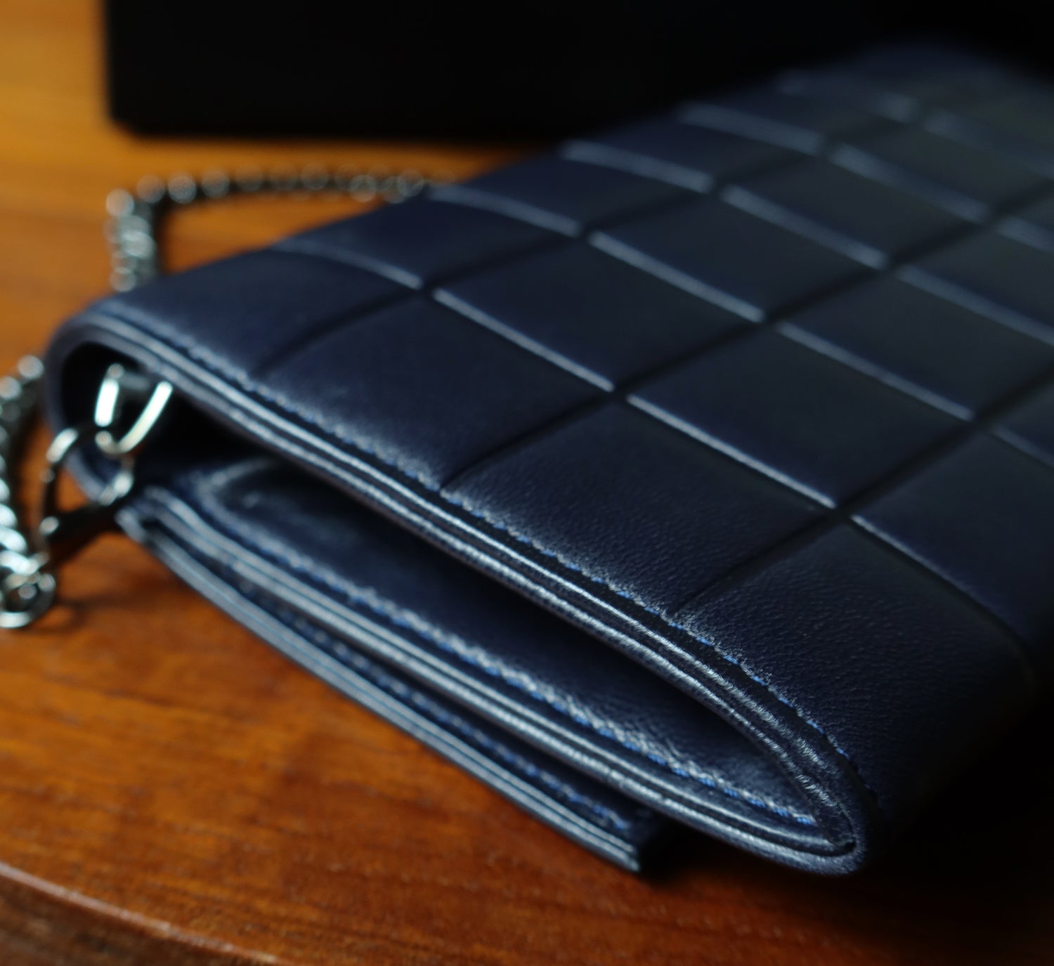 • Material: Dark navy lambskin leather