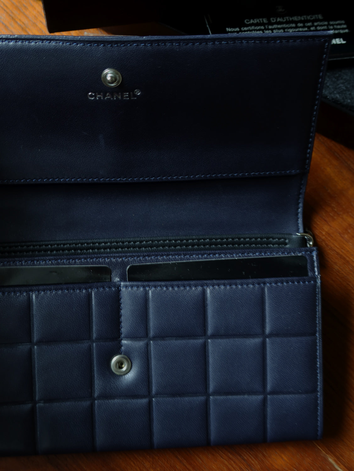 This vintage chocolate bar Chanel wallet is in excellent condition - almost brand new!