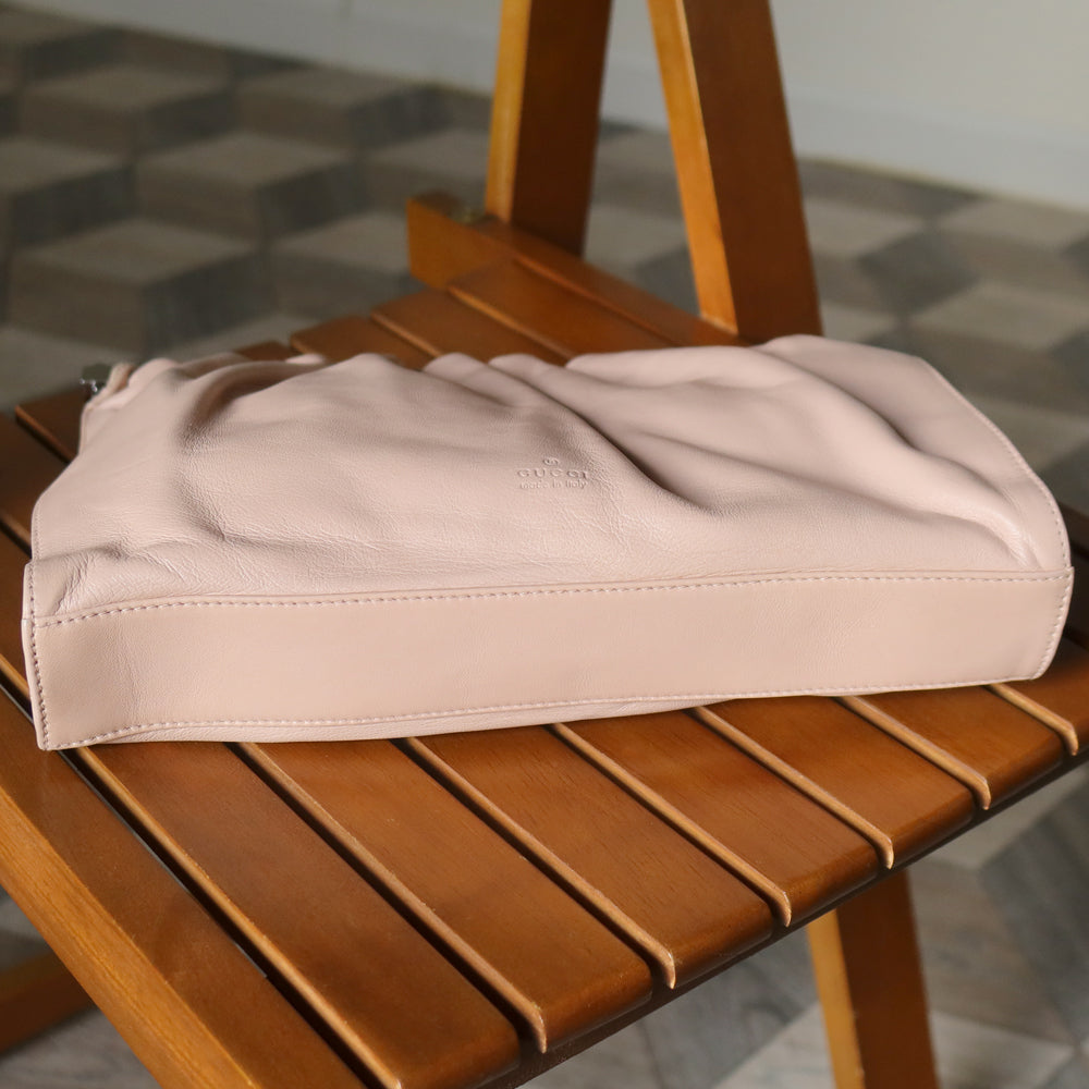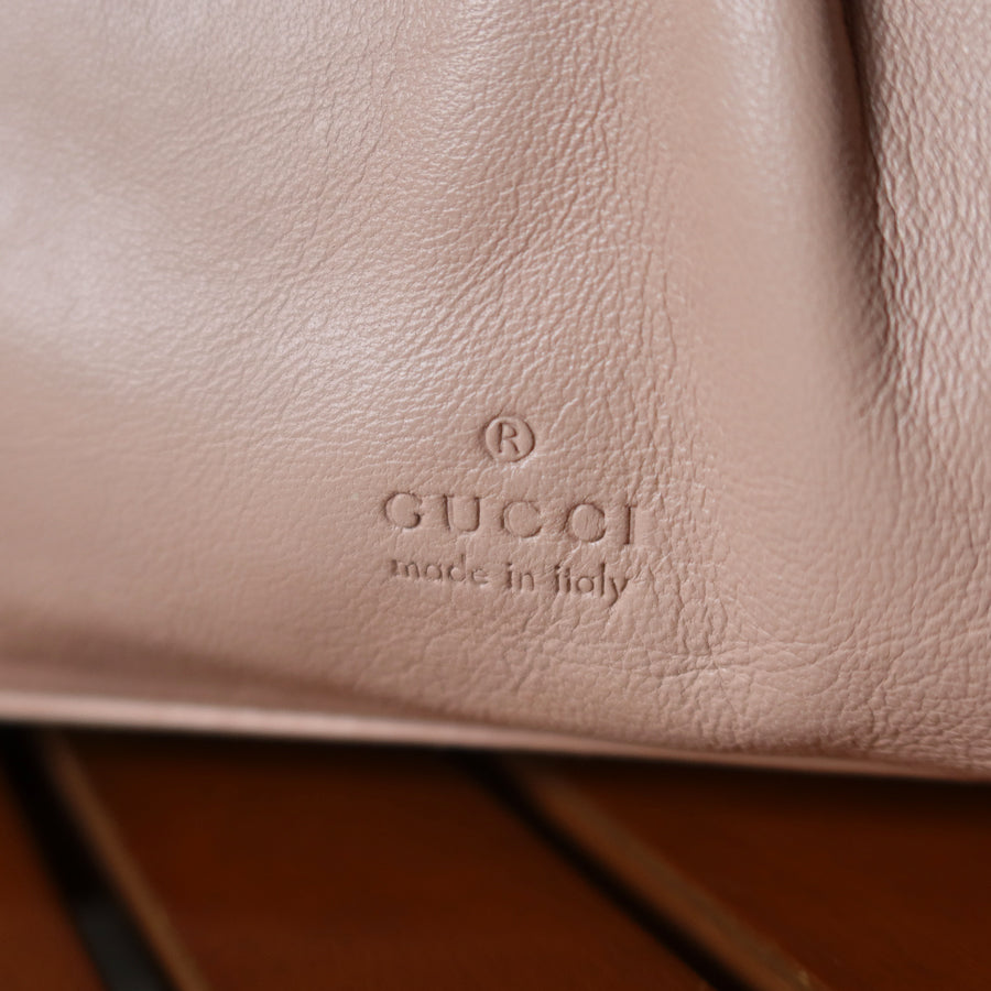 Gucci Vintage Dusty Pink Grained Leather Ruffle 2way Clutch Shoulder Bag