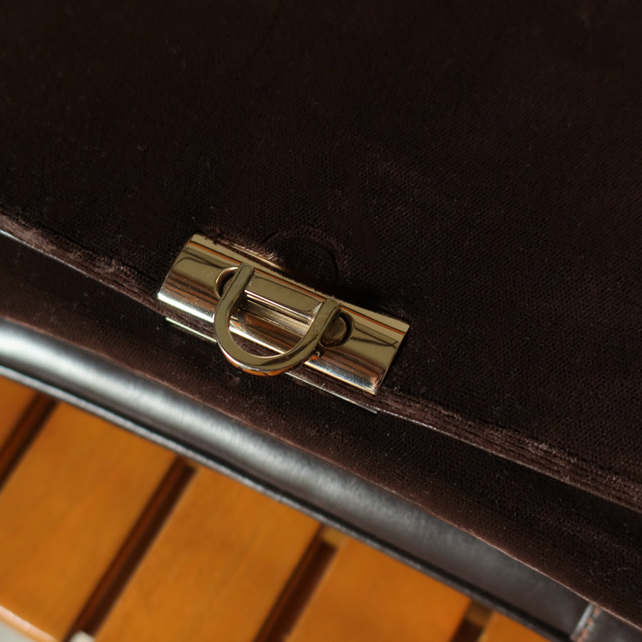 Loewe Vintage Dark Brown Leather Gancini Top Handle Flap Bag