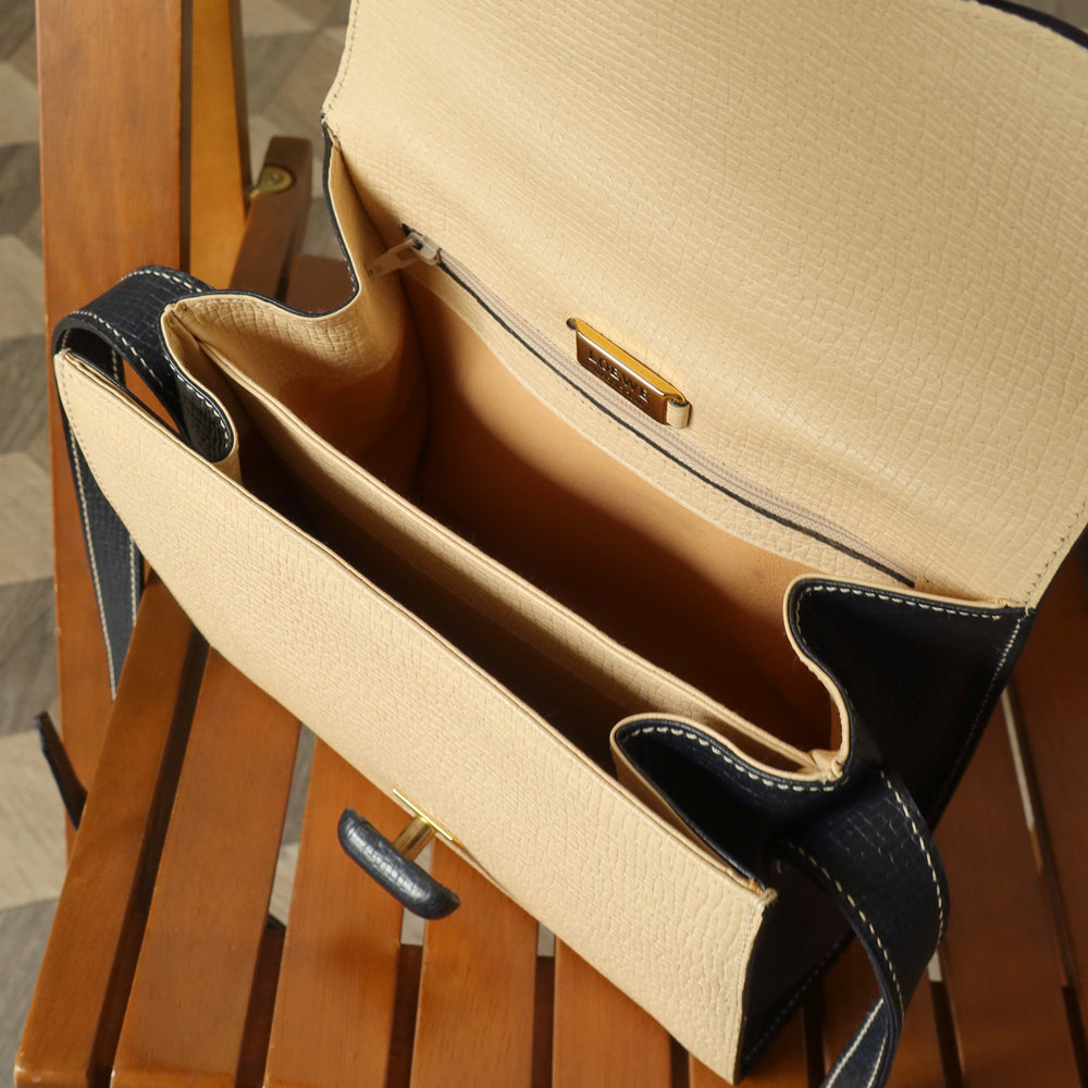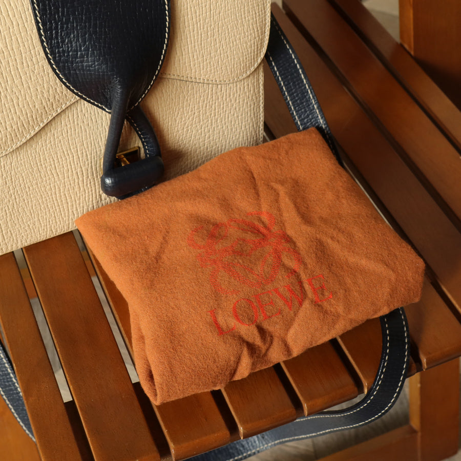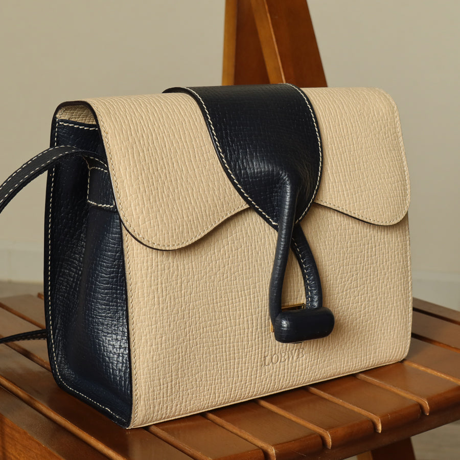 Loewe Vintage Ivory Dark Navy Grained Leather Knot Turn lock Crossbody Bag