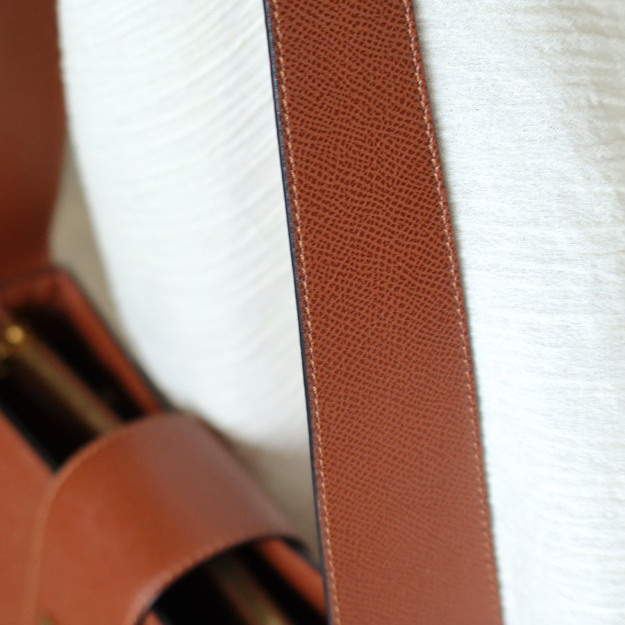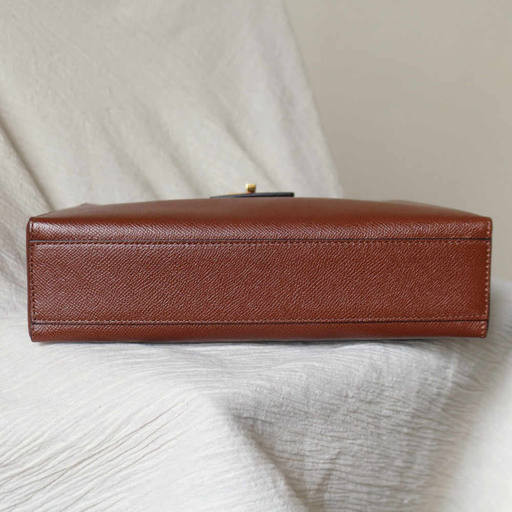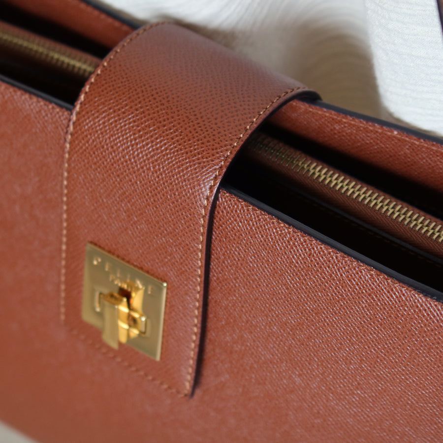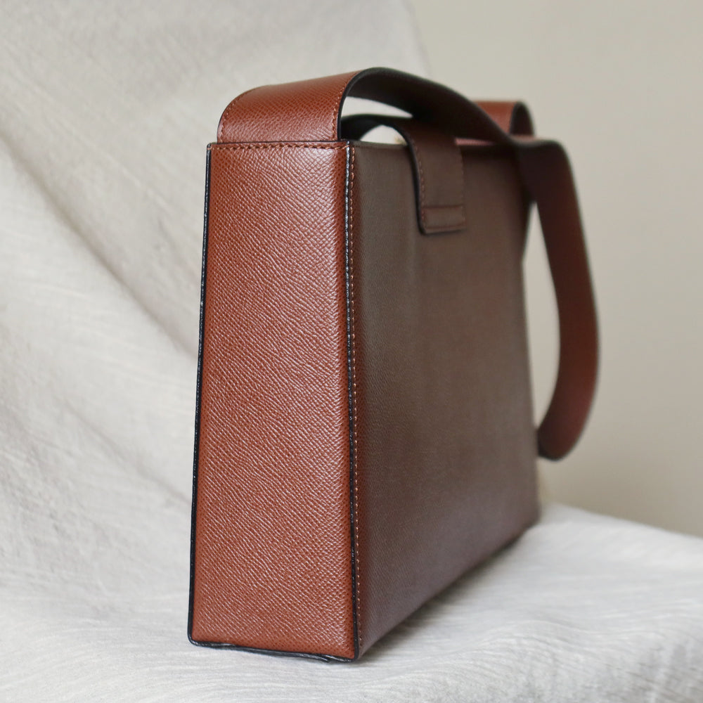 A chic shoulder bag from early 2000s that is extremely rare, in this exquisite cognac brown grained calf leather and stunning gold hardware turn lock, you won't find it anywhere now!