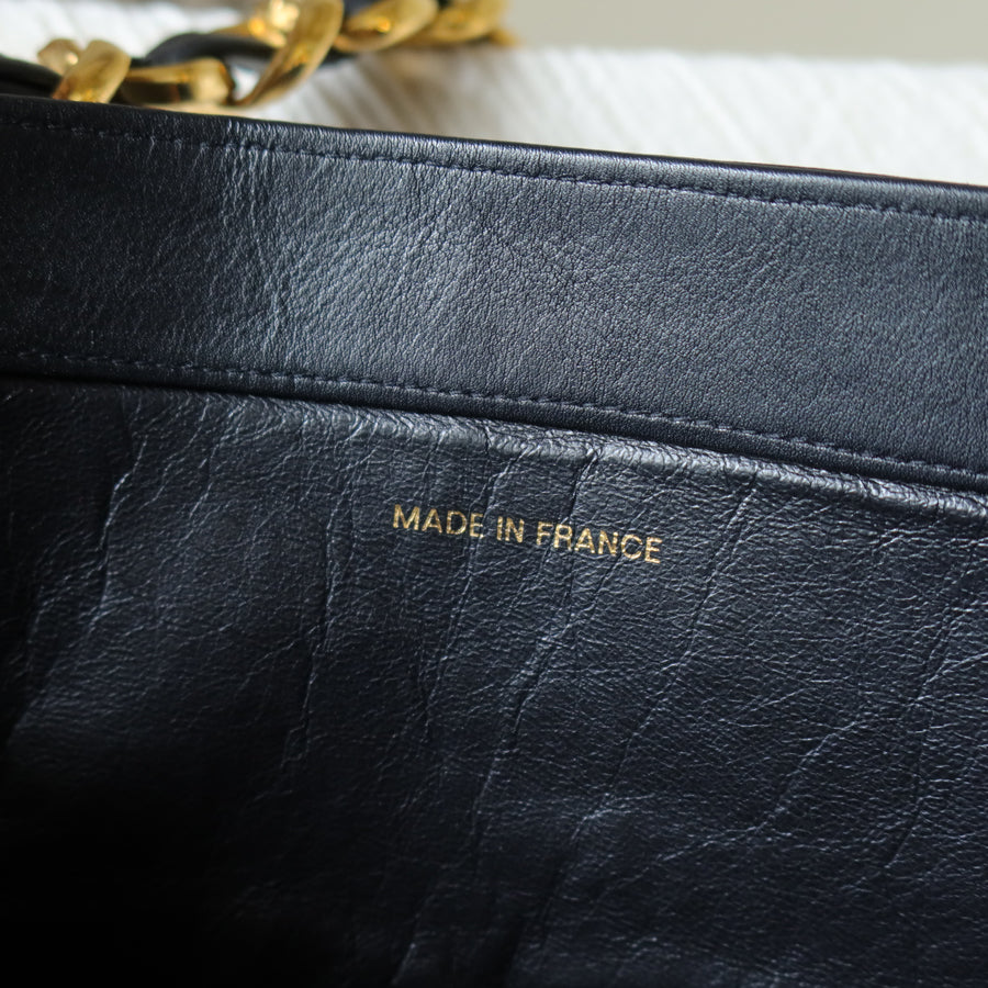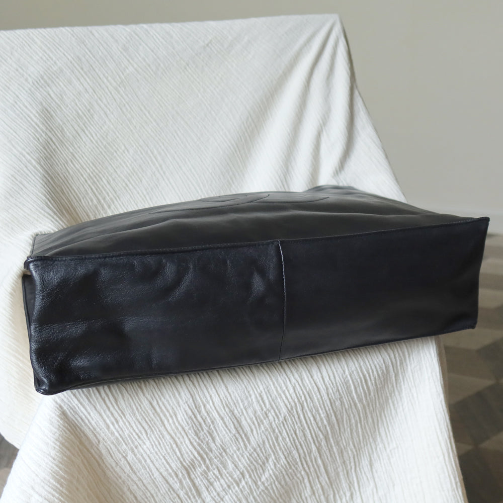 Rare Chanel Vintage Black Leather CC mark Maxi Shopper Tote Bag