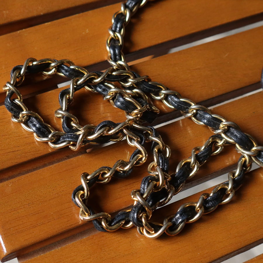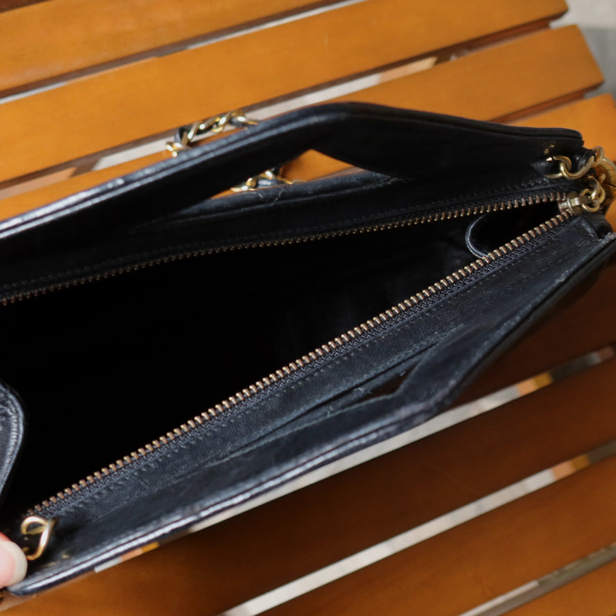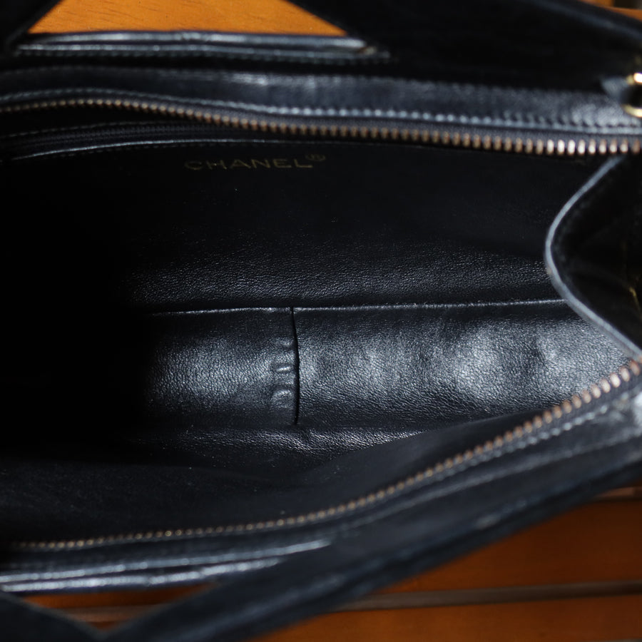 Rare Chanel Vintage Black Matelasse Quilted Top Handle 2way Shoulder Bag