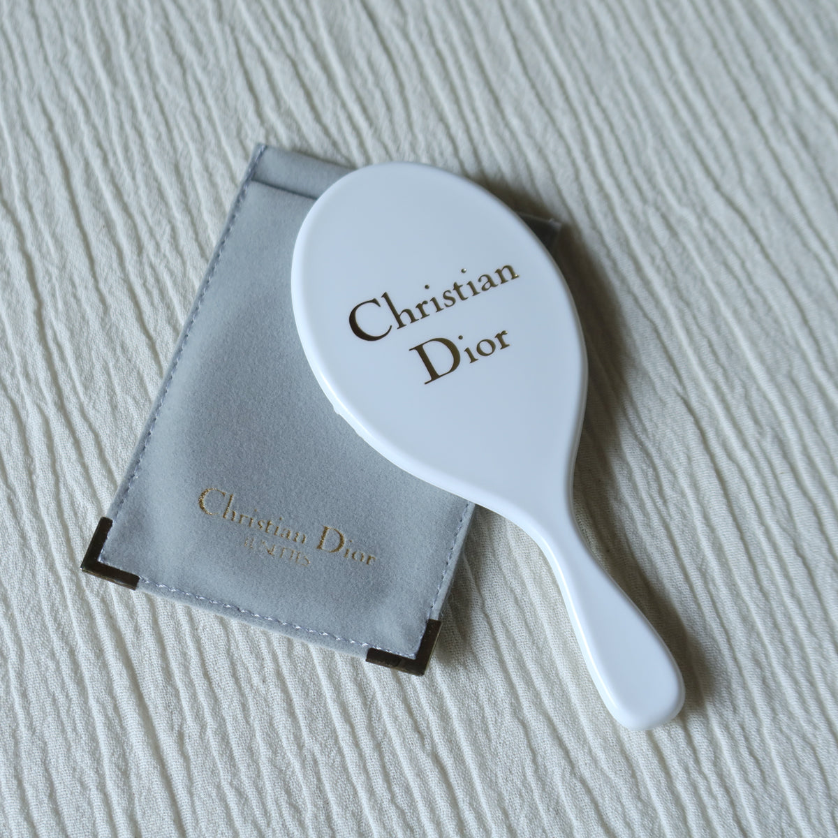 "Christian Dior" foil gold logo handheld mirror, with a cute grey color dust bag that you can hide the mirror and keep it clean any time.