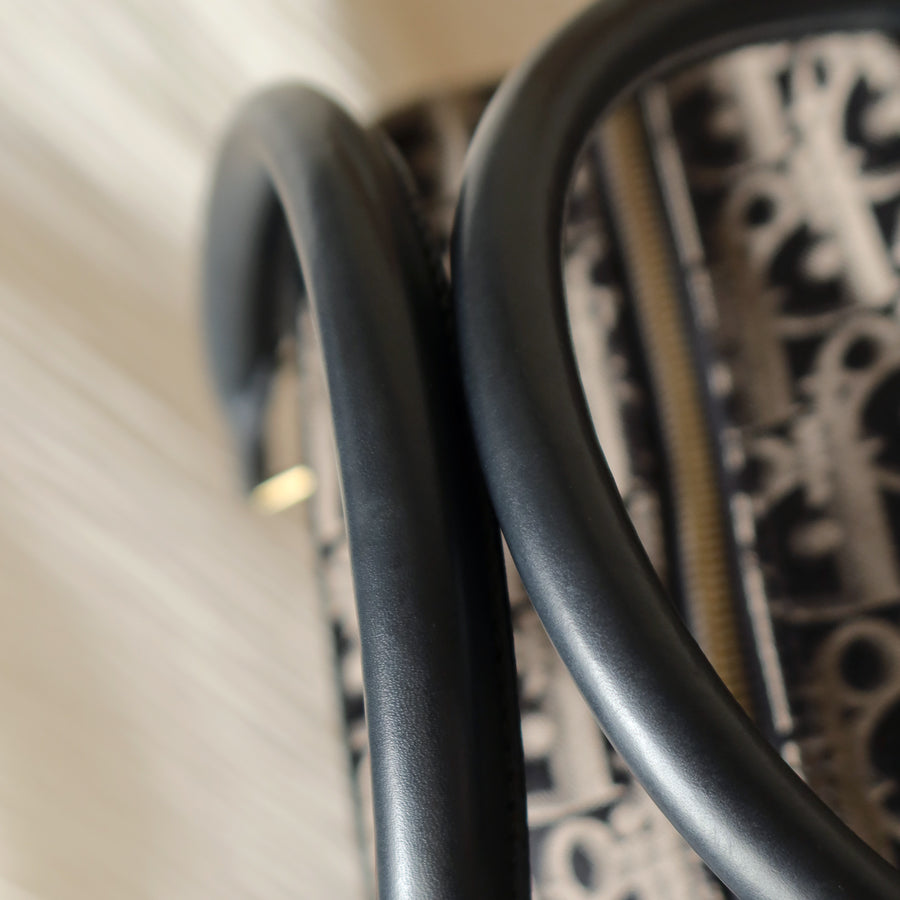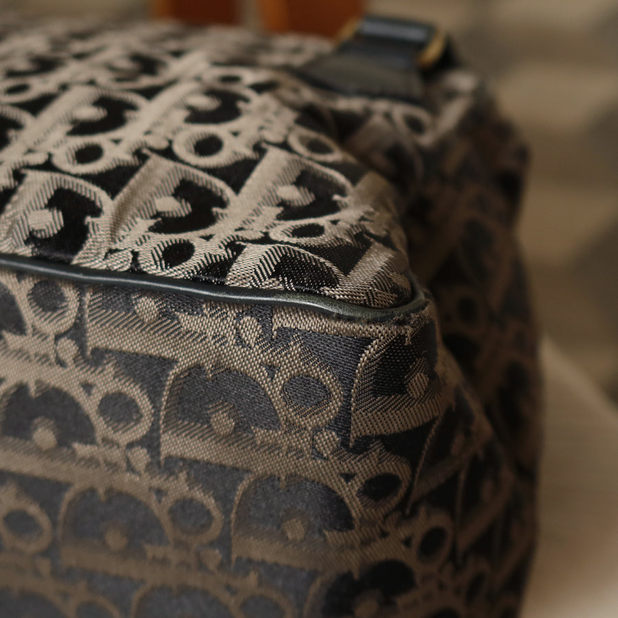 Extremely durable and hassle-free, the nylon-canvas pairs with dark navy leather handle and rims, which almost looks black sometimes, a bag that's so interesting to look at! This exact style of Trotter motifs is also no longer available in Dior now.