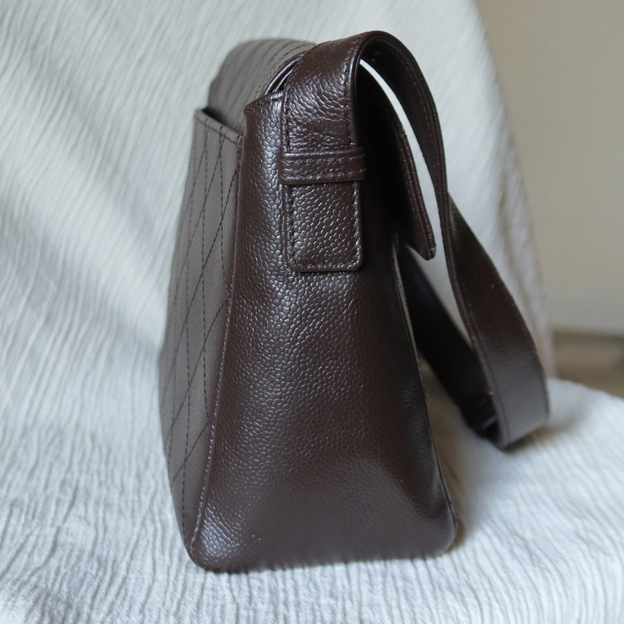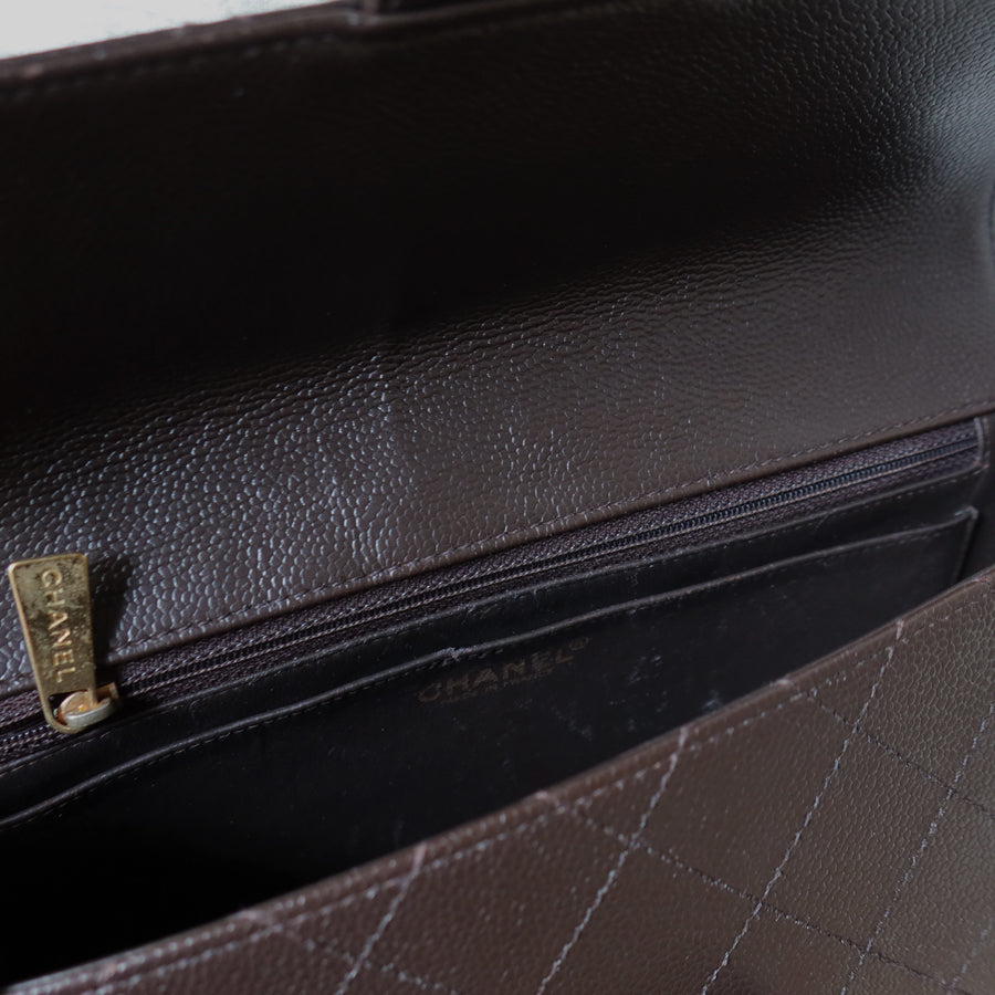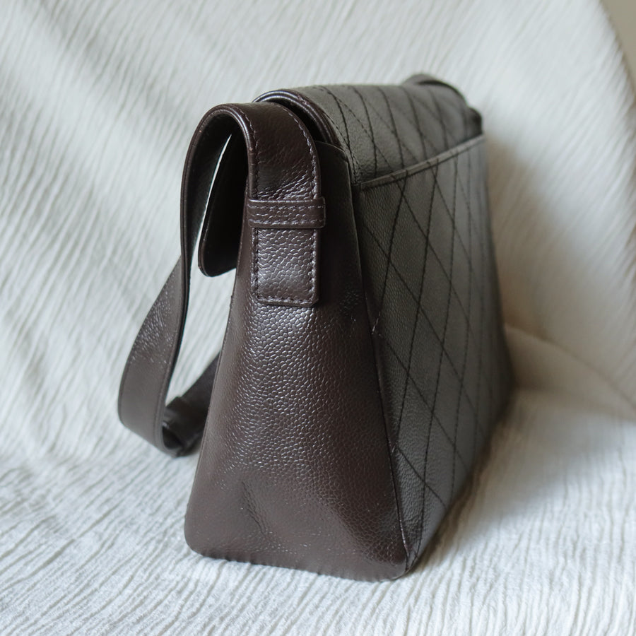 Chanel Vintage Dark Brown Caviar Leather Diamond Stitched Flap Shoulder Bag