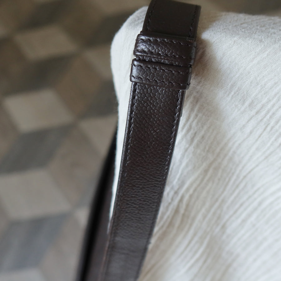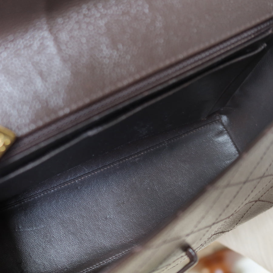 A rare preppy vintage Chanel for those of you that loves an understated chic look — clean style in a lovely deep brown shade, with the house's signature diamond stitching over caviar leather, and a simple CHANEL embossed logo on the front flap—this beauty from late 90s' will never go out of style!